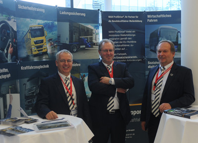 von 30: Andreas Griem (v.l.n.r.), Willibald Pfeffer und Werner Bigiel informierten auch an einem Stand im Foyer 3 über ihre Fahrlehrer-Fortbildungen