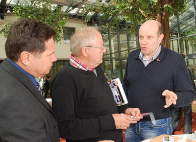 von 15: Jens Daum, der Fahrschulbeauftragte des Hauptsponsors Volkswagen für fast alle neuen Bundesländer und Berlin (M.), berichtete über den VW up!, den der Bundesvorsitzende für seine Fahrschule beschafft habe