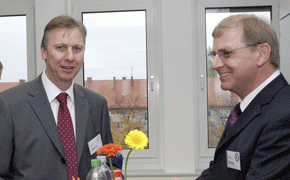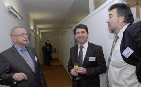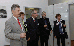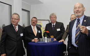 von 18: Arne Böhne (v.l.n.r.) vertrat bei der Eröffnung den TÜV Rheinland, bei dessen Immobiliengesellschaft sich die Teams von Gerhard von Bressensdorf und Peter Glowalla eingemietet haben