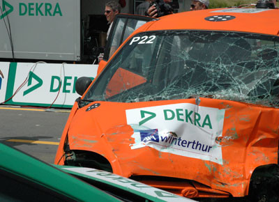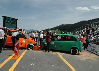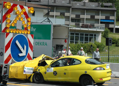 von 11: Der "Crashtest 2012" von Dekra und Axa fand im schweizerischen Wildhaus unter dem Motto "Achtung Baustelle - wenn's eng wird, wird's gefährlich!" statt