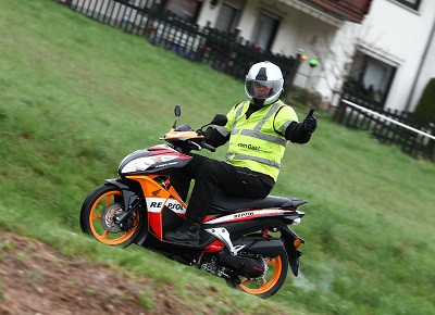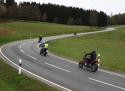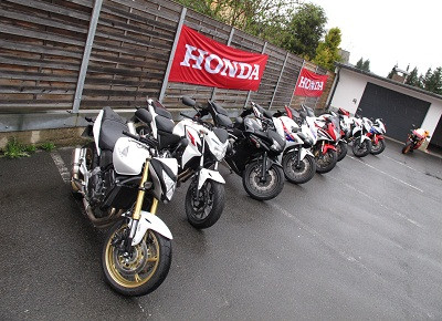 von 13: Am 27. April 2013 konnten beim gemeinsamen Fahrschul-Fahrtag der Zeitschrift „Fahrschule“ und Honda dutzenden Maschinen auf den kurvigen Straßen des Spessarts ausprobiert werden