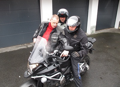 von 13: Die Gewinner der Zeitschrift „Fahrschule“, die Motorradspezialisten aus den Landesverbänden, das Team von Honda und die Redakteure der „Fahrschule“ ließen sich vom Dauerregen die Laune nicht verderben