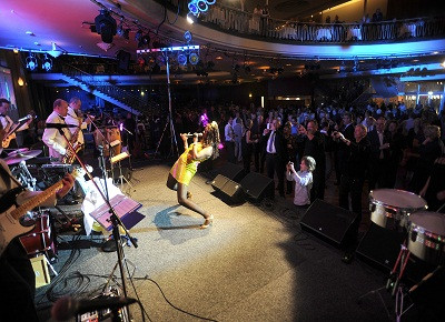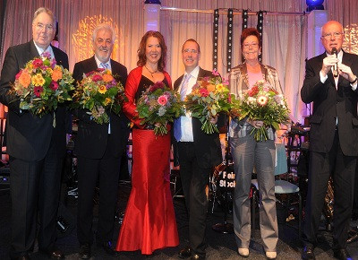 von 10: Freuten sich über einen Blumenstrauß von Heinz Dowerg (v.l.): Gerhard v. Bressensdorf, Bernd Schlunke, Petra Sanchez, Organisationskünstler Jürgen Schulz und Ute Hothan, die gute Seele des Vertriebs an Sonderzielgruppen
