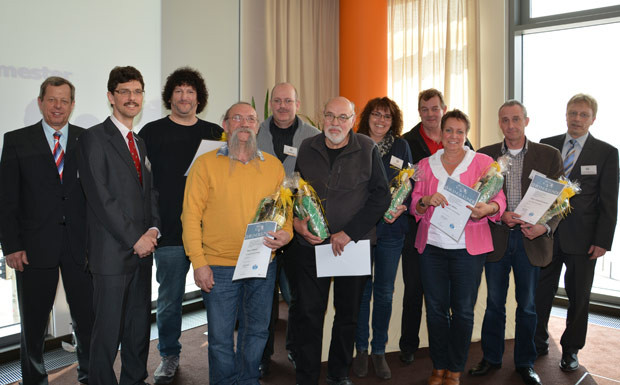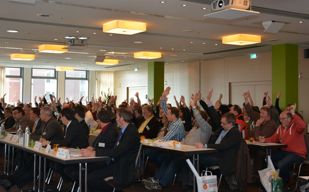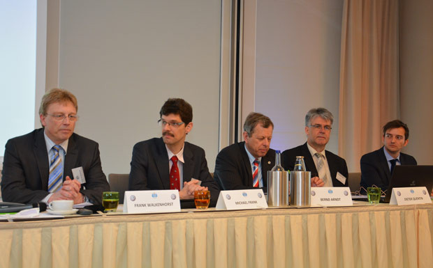von 18: Frank Walkenhorst, seine Stellvertreter Michael Frank und Bernd Arndt sowie David Lubczynski vom Hauptsponsor Volkswagen lauschten interessiert.