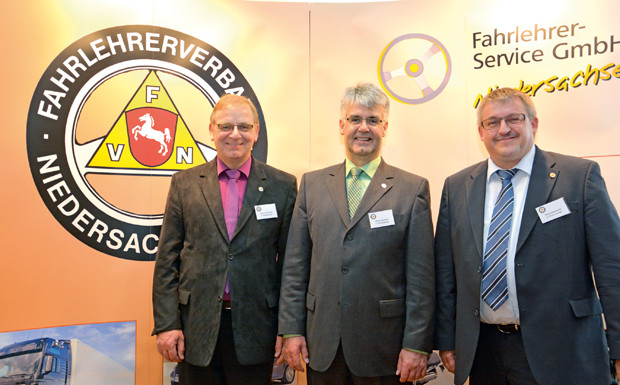 von 20: Der neue alte Vorstand des Fahrlehrerverbands Niedersachsen: Neben dem Vorsitzenden Dieter Quentin, der nicht zur Wahl stand, wurden Klaus Napierski (r., 2. Vorsitzender) und Dietmar Bohlen (l., 3. Vorsitzender) in ihren Ämtern bestätigt