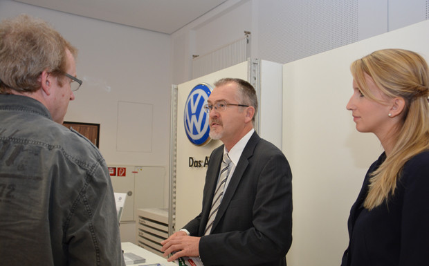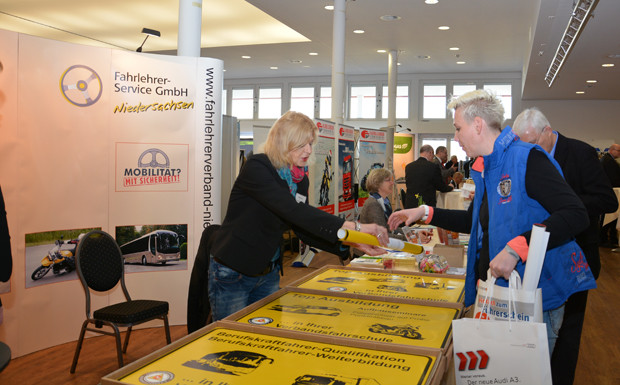 von 20: An rund 20 Ständen drehte sich in der Ausstellung alles um die Fahrschule. Am Stand von Volkswagen, Hauptaussteller der niedersächsischen Versammlung, hatte Peter Eckert, Fahrschulansprechpartner für die Region Mitte, immer gut zu tun