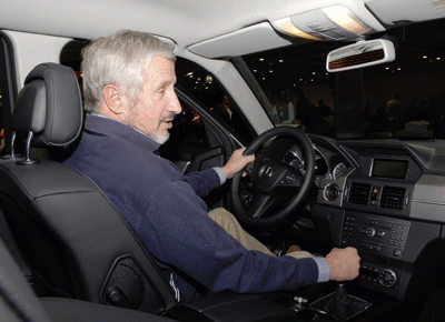 von 9: Handicap-Spezialist Klaus Schneider aus Germering fand das Cockpit des GLK für die Behinderten-Ausbildung gut, aber die per Pedal zu bedienende Feststellbremse hinderlich