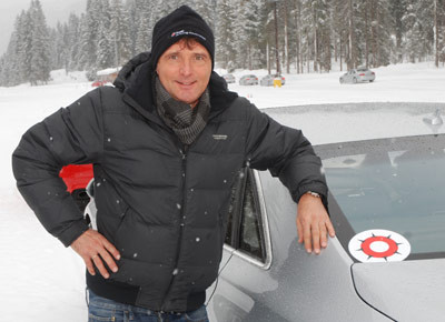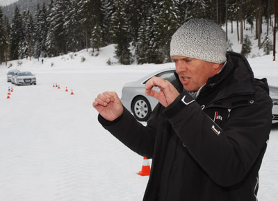 von 12: Bei seiner Ausweichübung hängte sich der niederländische Instruktor Rob Kunst zur Not auch an die Fahrertür, um dem Fahrer Tipps für den richtigen Gaswechsel und das Lenken zu geben