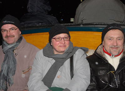 von 12: Bei der Pferdekutschenfahrt zum abschließenden Abendessen konnte Veikko Stark und seine Frau Christiane sowie Hans-Peter Viktoria Mützen und Handschuhe von Audi driving experience gut gebrauchen