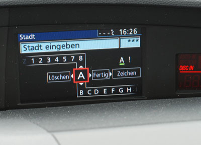 von 13: Die Zieleingabe des Navigationssystems ist viel umständlicher als bei wirklich guten Systemen, weil man nicht zwischen Zeilen springen kann