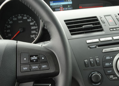 von 13: Das Navigationssystem lässt sich nur über die Lenkradtasten bedienen, was eine gute Lösung ist. Auf dem gut angebrachten Bildschirm stehen zu viele kleine, schlecht lesbare Informationen