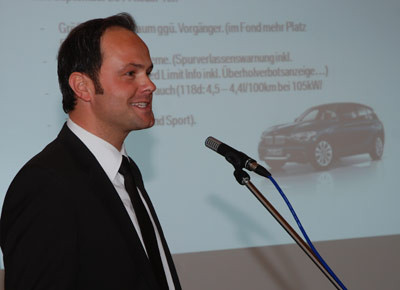 von 14: Matthias Hortmann, Fahrschul-Ansprechpartner für die Marken BMW und Mini, verkündete, dass es ab der zweiten Jahreshälfte Fahrschul-Ersatzwagen geben wird, die FTS aus Augsburg bereit hält
