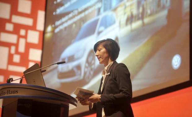 von 22: Katharina Kienle, Bezirksleiterin für den Verkauf an Sonderzielgruppen bei Volkswagen, hatte eine Überraschung im Gepäck: 14 Tage vor der offizellen Markteinführung stellte sie den anwesenden Fahrlehrern den neuen VW Tiguan vor
