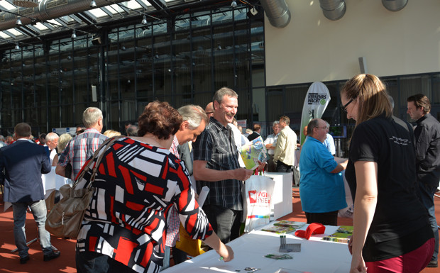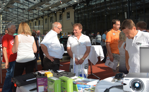 von 18: Dekra spendierte nicht nur das Mittagessen, sondern verteilte an seinem Stand USB-Sticks in Form von HU-Plaketten, auf denen sich der Verkehrssicherheitsreport befand