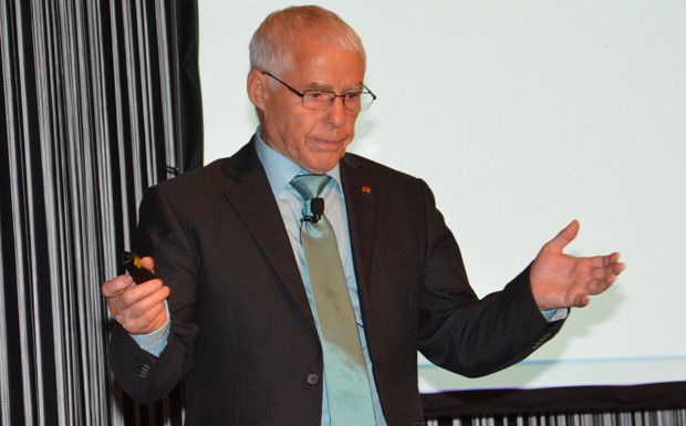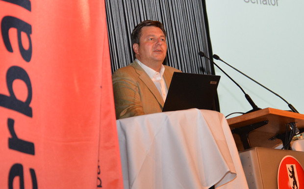 von 18: Unter anderem auf das Thema Fahrassistenzsysteme ging Matthias Lorenz, Bezirksleiter der Sonderzielgruppen des Hauptausstellers Volkswagen, ein