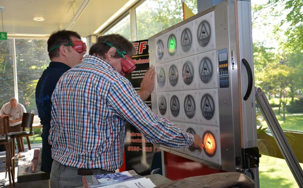 von 12: Am Stand des Bundes gegen Alkohol und Drogen im Straßenverkehr (B.A.D.S.) konnten Mitglieder zunächst ihre Reaktionszeit im nüchternen Zustand bestimmen …