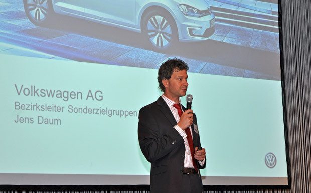 von 13: Jens Daum, Bezirksleiter Sonderzielgruppen beim Hauptaussteller Volkswagen, präsentierte unter anderem den neuen Polo und den Golf Sportsvan