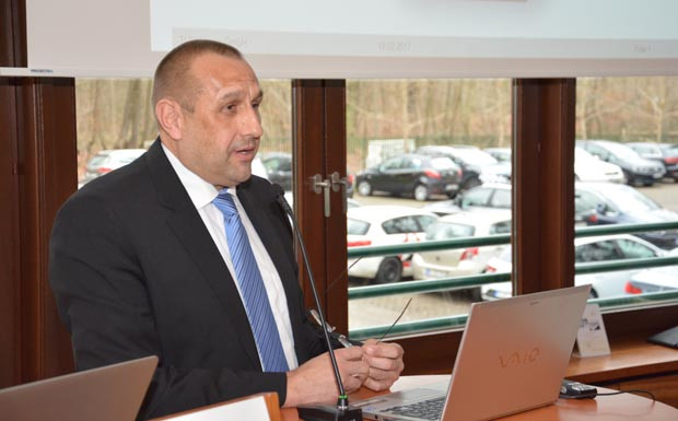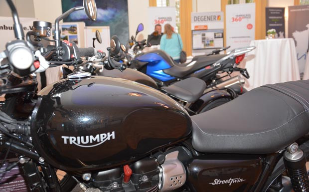 von 14: In der begleitenden Fachausstellung konnten sich die Fahrlehrer während der Sitzungspausen umsehen - und zum Beispiel Motorräder von Triumph unter die Lupe nehmen