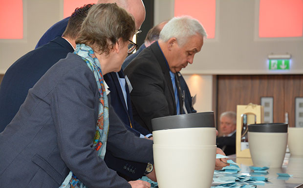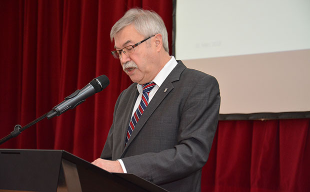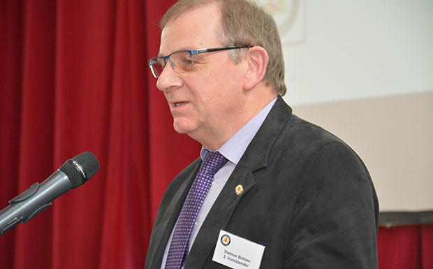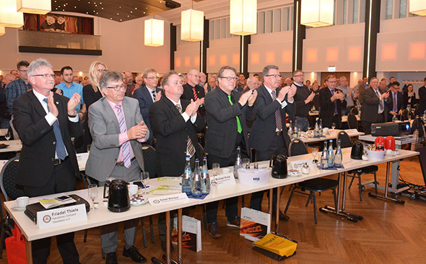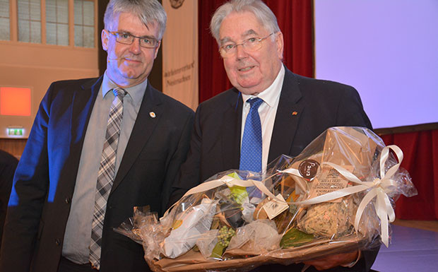 von 12: Dieter Quentin überreichte Gerhard von Bressensdorf einen Geschenkkorb. Der BVF-Vorsitzende stellt sich in diesem Jahr nicht erneut zur Wahl und verabschiedete sich in Hannover