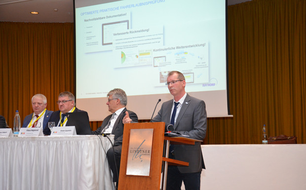 von 9: Kurt Bartels, 1. stellvertretender Vorsitzender der Bundesvereinigung der Fahrlehrerverbände, übernahm das Amt des Wahlleiters. Quentin dankte den Mitgliedern für seine Wiederwahl