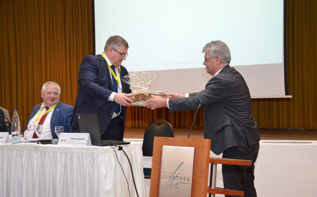von 9: Aus privaten Gründen legte Klaus Napierski das Amt des 1. stellvertretenden Vorsitzenden nieder. Quentin dankte ihm für seine 20-jährige Verbandsarbeit mit einem Präsent