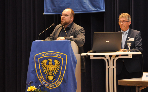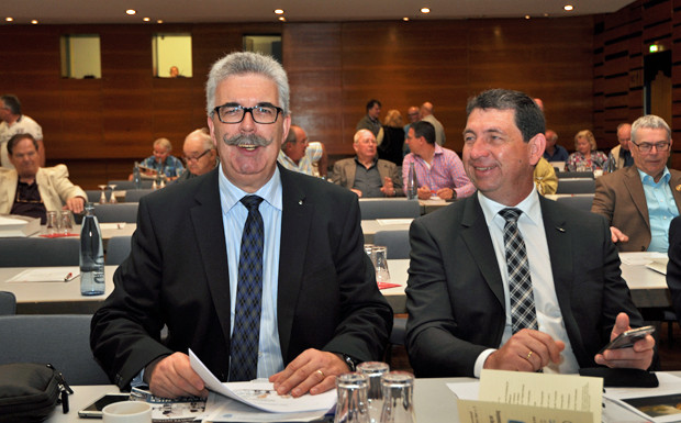 von 11: Daniel Boßlet (l.), Vorsitzender aus dem Bezirk Homburg, brachte den Antrag ein, einen Partner- und Familientarif einzuführen. Diesen billigte die Versammlung
