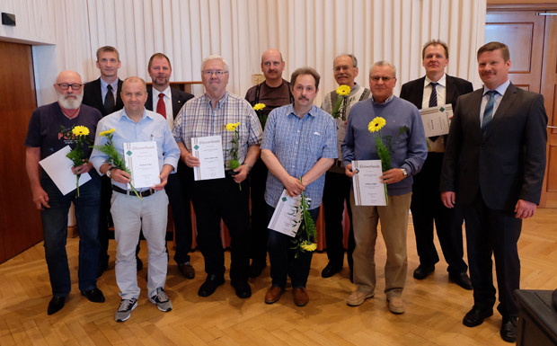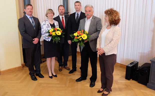 von 14: Mit einem Blumenstraußen wurden Heidemarie Keller, die Ende des Jahres ihre Tätigkeit als Referentin am Landesamt für Straßenbau und Verkehr niederlegt, sowie Karl Heinz Bauer, ehemaliger Direktionsbeauftrager der Fahrlehrerversicherung, verabschiedet