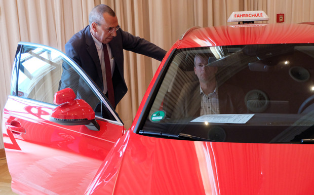 von 14: Dr. Walter Weißmann, Vorsitzender des Landesverbands Bayerischer Fahrlehrer, kam zu Besuch und interessierte sich bei der Ausstellung unter anderem für die neuen Modelle von Audi