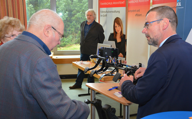 von 13: Fachgespräch am Veigel-Stand: Das Unternehmen aus Öhringen bietet Doppelbedienungen für Fahrschulwagen und behindertengerechte Pkw-Ausstattungen an