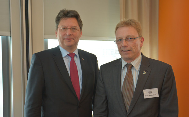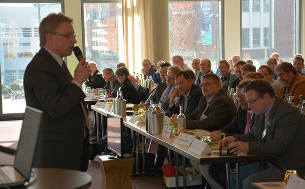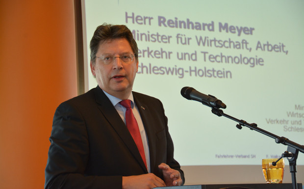 von 19: Besonderer Gast: Reinhard Meyer (SPD), Minister für Wirtschaft, Arbeit, Verkehr und Technologie in Schleswig-Holstein, sprach zu den Gästen der Mitgliederversammlung über die bröckelnde Infrastruktur