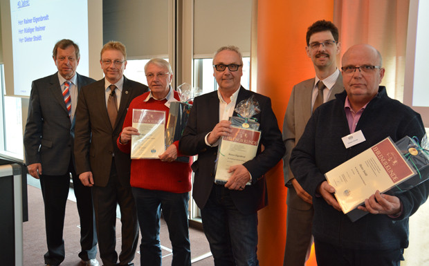 von 19: Auch die Ehrung der Jubilare darf nicht fehlen: 40 Jahre Fahrlehrertätigkeit feierten Rüdiger Reimer, Rainer Eigenbrodt, Rüdiger Reimer und Dieter Stoldt (von links)