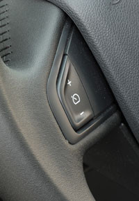 von 14: Der Geschwindigkeitsregler lässt sich über Lenkradtasten gut bedienen, doch muss er zuvor über eine Taste in der Mittelkonsole umständlich aktiviert werden