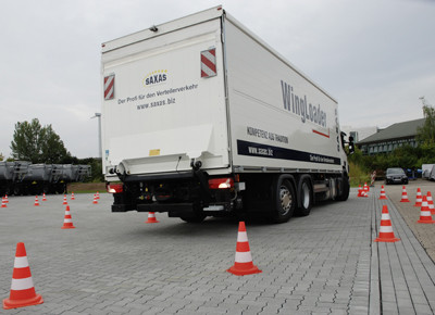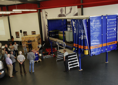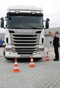 von 16: Für die praktischen Vorführungen zur Ladungssicherung setzt die Scania Fahrer Akademie eine Wechselpritsche ein, die auch bei der Fortbildung zum Einsatz kam