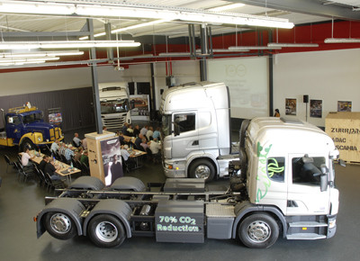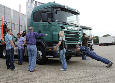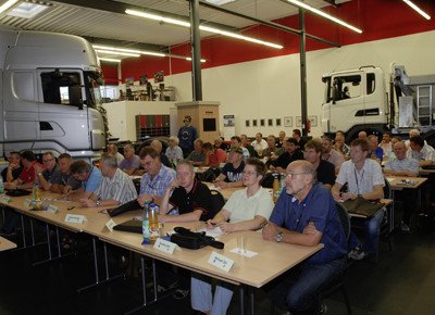 von 16: Heinrich Haas, Vorsitzender des Fahrlehrer-Verbandes Rheinland (l.), und Holger Maier, Leiter der Scania Fahrer Akademie, bieten vom 27. bis zum 29. September 2011 eine zweite CE-Fortbildung nach demselben Muster an