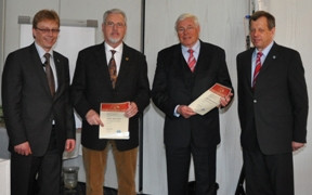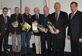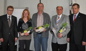 von 14: Der neue Landesverbandsvorsitzende Frank Walkenhorst (2.v.r.), sein 1. Stellvertreter Michael Frank (r.) und der 2. Stellvertreter Bernd Arndt (l.) wurden von Dieter Quentin, dem 2. stellvertretenden Vorsitzenden der Bundesvereinigung der Fahrlehrerverbände (BVF) unterstützt
