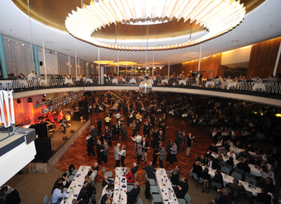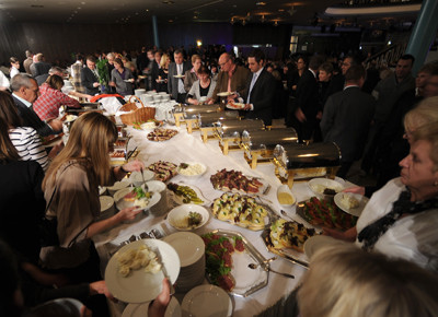 von 18: An vielen über den weitläufigen Bau verteilten Büffets gab es Berliner Spezialitäten bis hin zur bei Volkswagen unvermeidlichen Currywurst