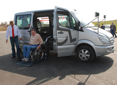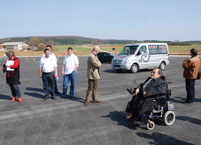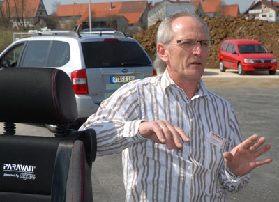 von 16: Bei der Presseveranstaltung am Gründonnerstag 2009 informierte sich auch Paravan-Kunde und Rollstuhlfahrer Willi Rudolf, Vorsitzender des Landesverbandes Selbsthilfe Körperbehinderter Baden-Württemberg e.V. (BSK)