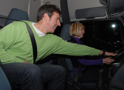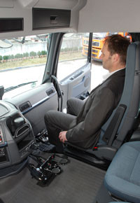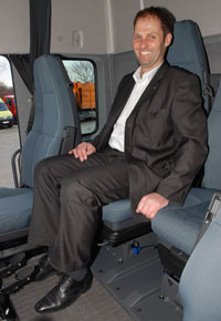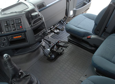 von 12: Der Vorführ-Lkw für Fahrschulen hat eine Doppelbedienung von Revex-Flex, die sowohl den Beifahrersitz als auch den rechten der beiden Mittelsitze anbindet