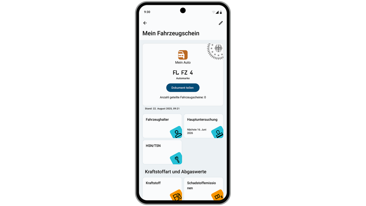 Berlin (dpa) - Beim Autofahren muss er immer mit dabei sein: der Fahrzeugschein. Viele haben ihn im Handschuhfach oder hinter der Sonnenblende - oder aber vergessen ihn zu Hause. Das ist künftig kein Problem mehr, denn er kann nun auch digital auf dem Smartphone mitgeführt werden.