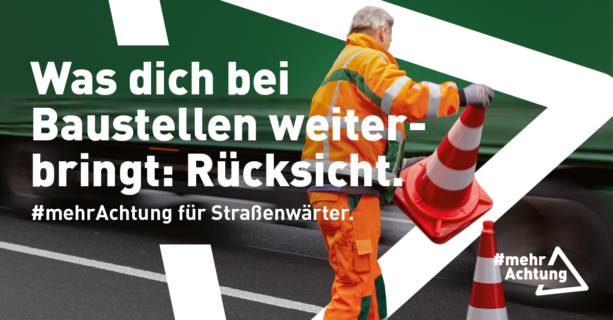 Bereits 2022 stand die Sicherheit von Straßenwärterinnen und Straßenwärtern mit "Einsatzkräfte schützen" im Fokus der Verkehrssicherheitskampagne "Runter vom Gas". Die neue Kampagne "#mehrAchtung für Straßenwärter" schließt daran an und legt das Augenmerk auf mehr Respekt und Rücksichtnahme.